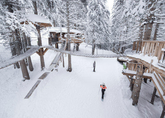 For novice skiers and children, there are plenty of green and blue slopes that start at the resort, so you can gently progress at your own pace while exploring the surrounding area. The Lil’Stash snowpark, tree huts and self-service barbecue area are easy to reach – just choose between the two slopes – a green and a blue – that lead straight there from the resort.