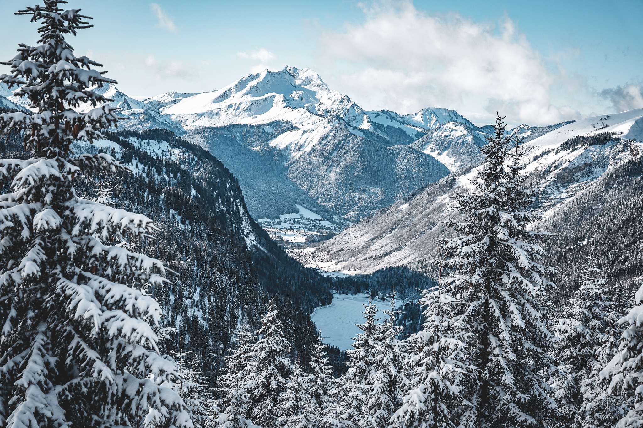 Un parcours spectaculaire au cœur des Alpes, entre pistes de ski et forêts d’altitude enneigées.