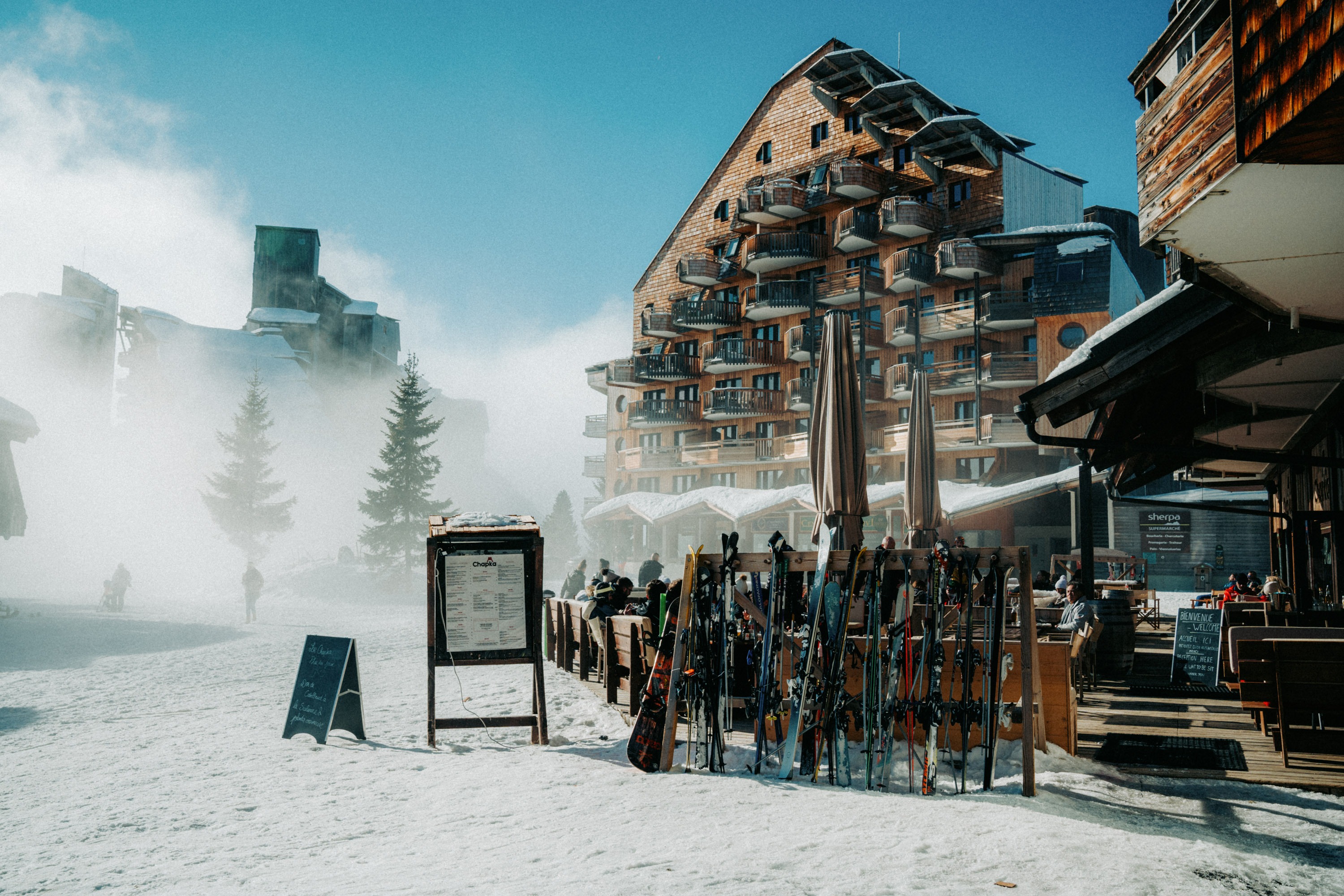 155 Steakhouse, in the heart of Avoriaz, is the go-to restaurant for meat lovers. Enjoy finely selected cuts, gourmet sides, and a refined wine bar. With a sunny south-facing terrace and a warm atmosphere, it’s the perfect spot for an unforgettable meal in the mountains.
