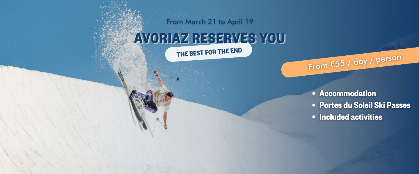 Don’t miss the opportunity to experience Avoriaz with exceptional offers. As they say, « Avoriaz gives you the best for last. » Come close out the winter in style, surrounded by breathtaking landscapes, unique activities, and a festive atmosphere.