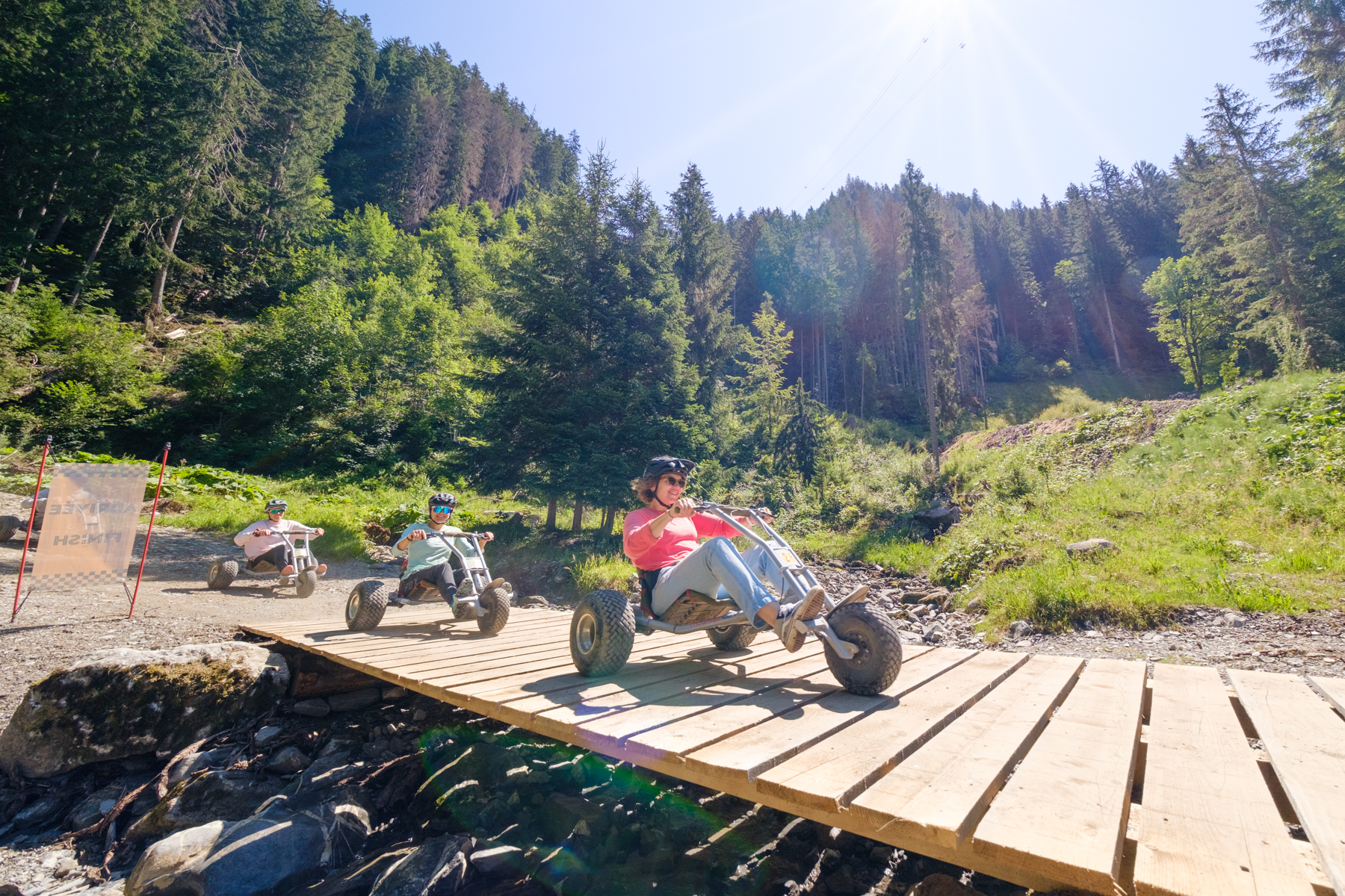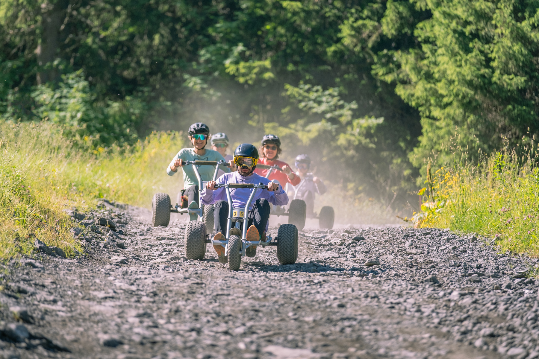 Amateur de sensations fortes, embarquez à bord de ce véhicule à 3 roues équipé de freins hydrauliques et conçu avec un centre de gravité très bas pour une bonne tenue de route. Guidon en main, confortablement installé dans votre siège baquet, il ne vous reste plus qu’à vous élancer pour une longue descente de 3,2 km et 600 m de dénivelé.