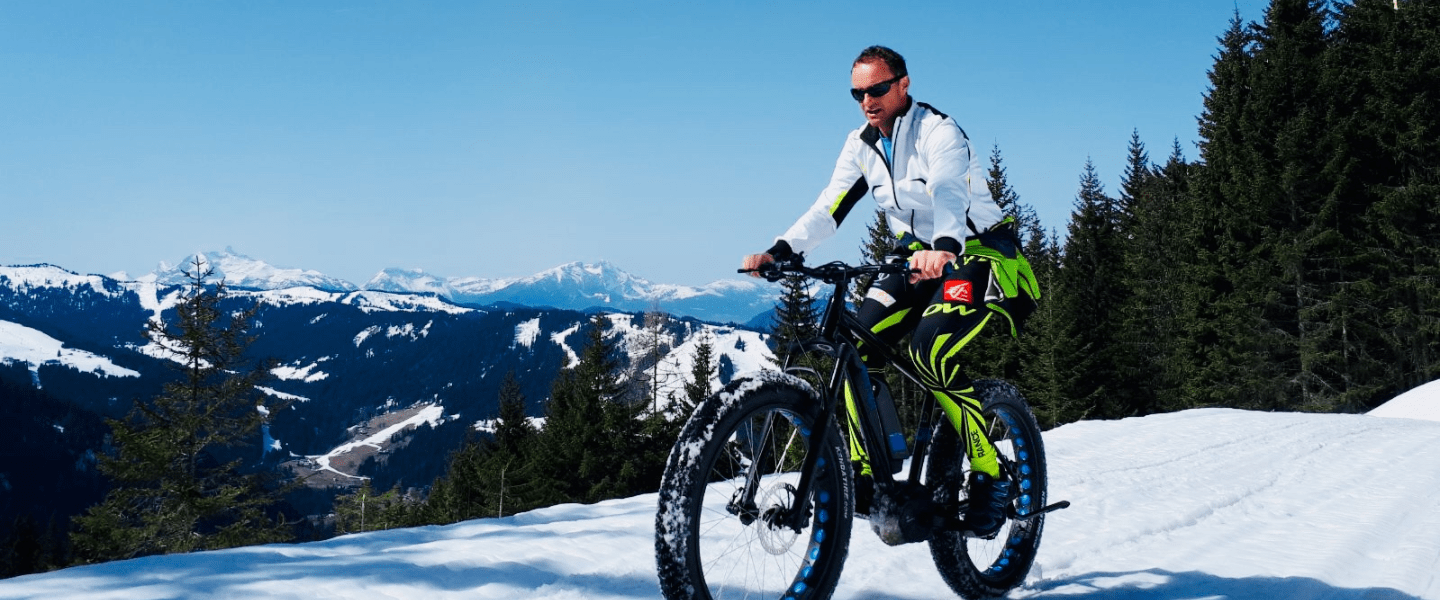 Initiez-vous gratuitement au Fat-Bike ou VTT sur neige ! Au coucher du soleil, apprenez à maîtriser votre vélo sur un plateau enneigé.