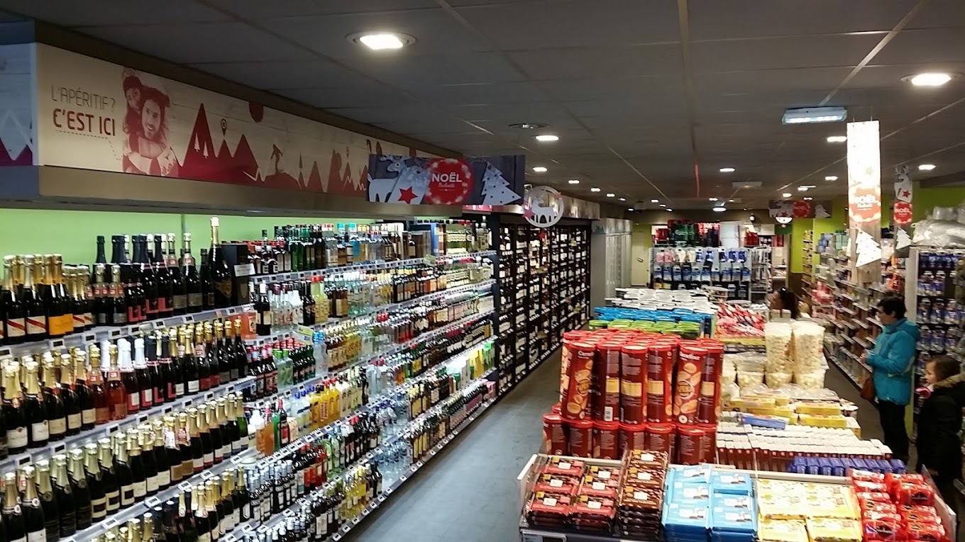 Grande supérette en plein centre de la station, Produits Carrefour et produits régionaux.