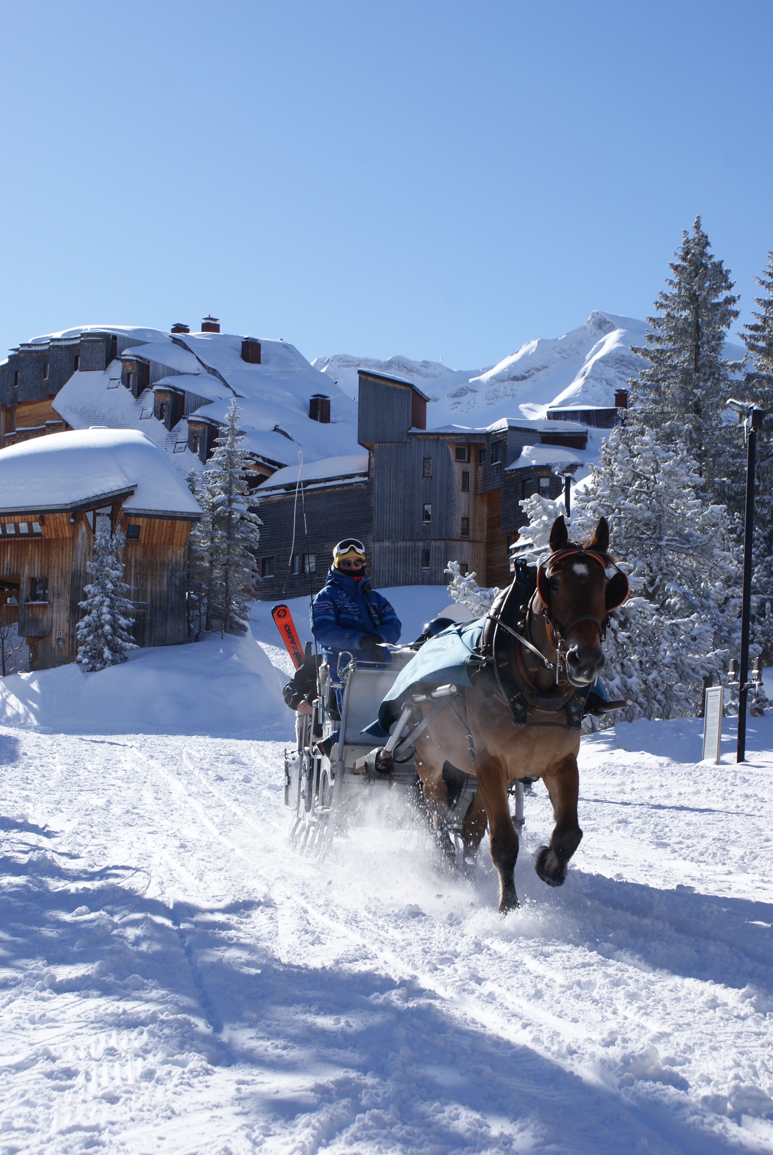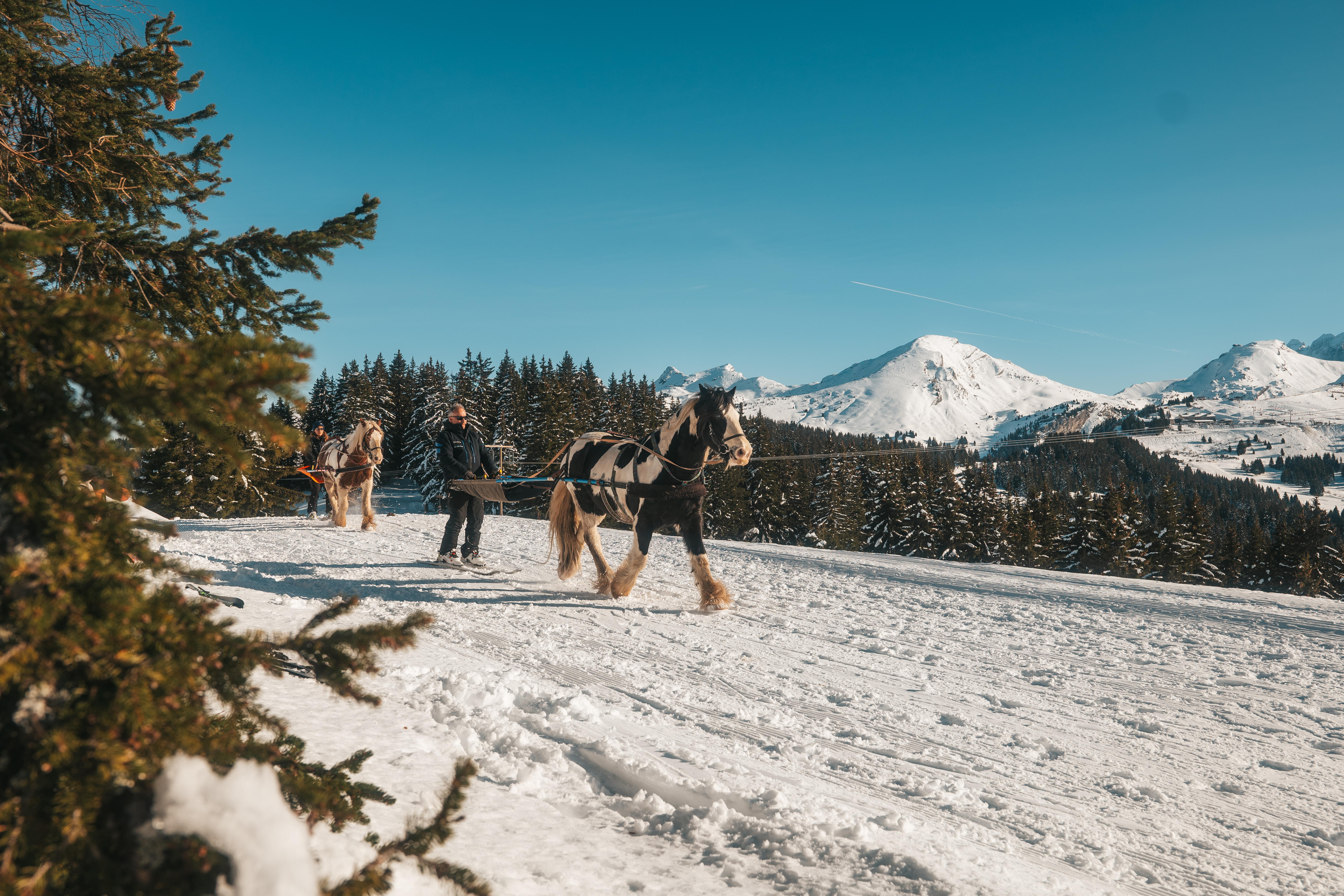 Le Ski-Jöering, plaisir de la glisse autrement. Venez profiter d'une expérience inoubliable à skis derrière un cheval, dans la majesté des décors des Portes du Soleil. Plusieurs séances sont possibles, initiation 30min, balade 1h ou confirmé 1h.