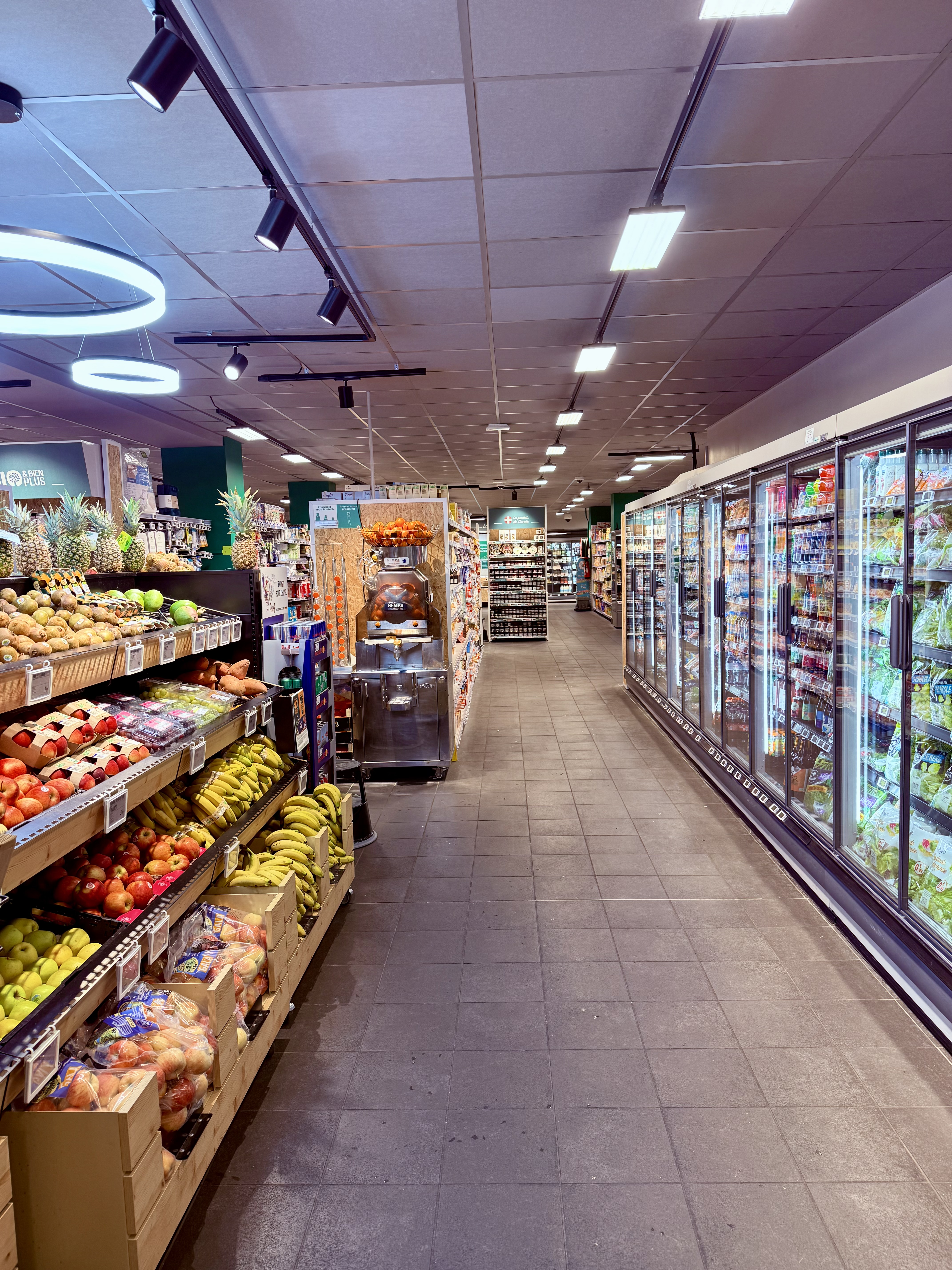 Grande supérette en plein centre de la station, Produits Carrefour et produits régionaux.