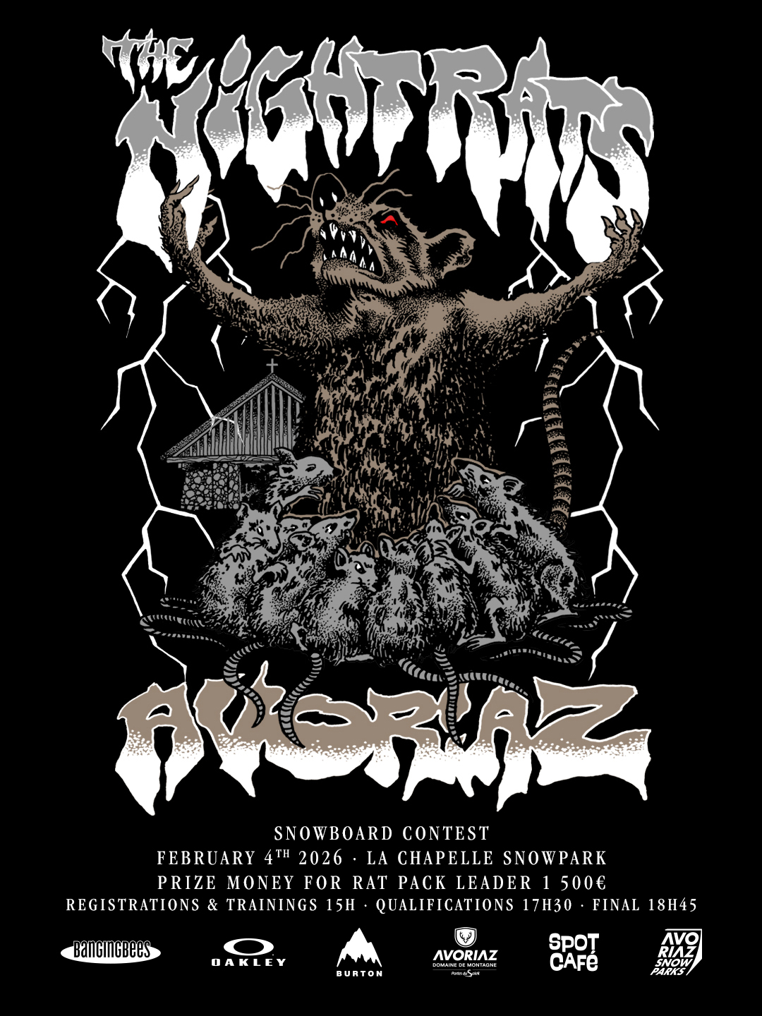The Night Rats est un contest de snowboard nocturne qui se déroule au snowpark de La Chapelle, dans une ambiance unique et résolument freestyle.