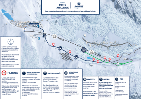 - Parkings van Avoriaz vol: er wordt een parkeerplan ingevoerd rond de Ferme de Seraussaix en langs de Avoriaz-weg tot aan de Col de Joux Verte.