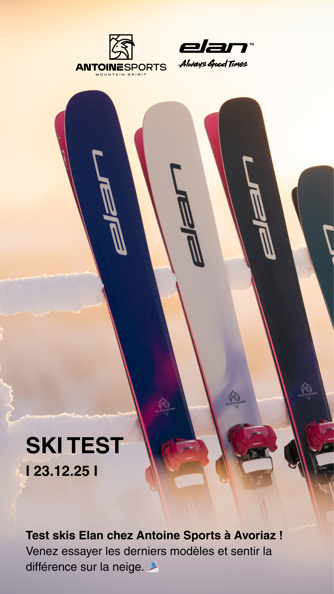 Test de nieuwste Elan ski’s in Avoriaz bij Antoine Ski. Ervaar prestaties, precisie en plezier op sneeuw tijdens deze speciale ski test dag. Kom de nieuwste modellen uitproberen en voel het verschil op de sneeuw.