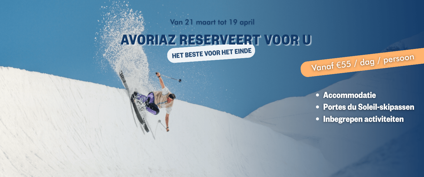 Mis de kans niet om de ervaring Avoriaz te beleven met uitzonderlijke aanbiedingen. Zoals men zegt: « Avoriaz biedt je het beste voor het laatst. » Kom de winter in stijl afsluiten, omringd door adembenemende landschappen, unieke activiteiten en een feestelijke sfeer.